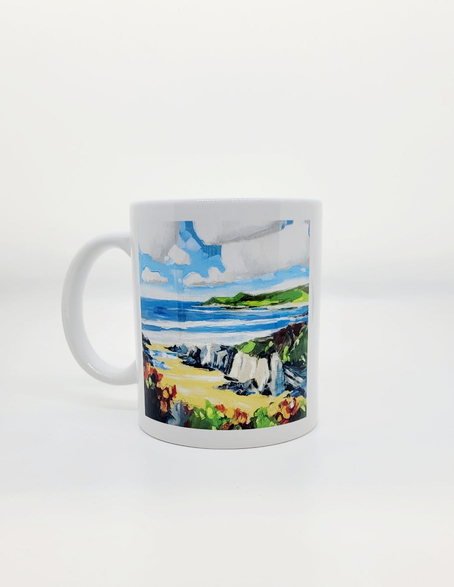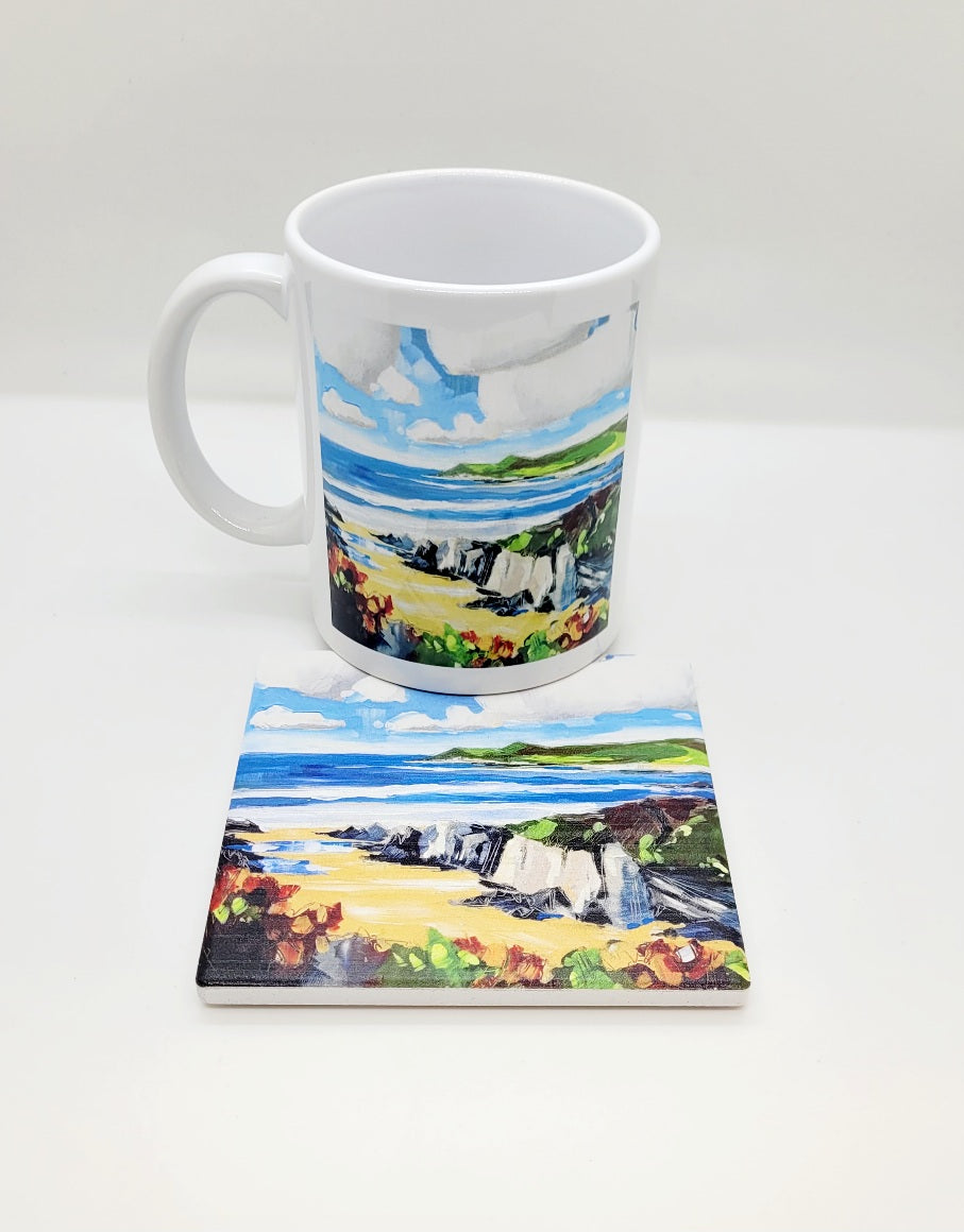 Introducing the Barricane Mug, the perfect addition to your morning routine. Crafted from durable ceramic, this mug features a stunning view of Barricane beach in North Devon, captured by artist Jo Allum. Complete with a matching coaster, enjoy sipping your favorite beverage while admiring this beautiful coastal scene.