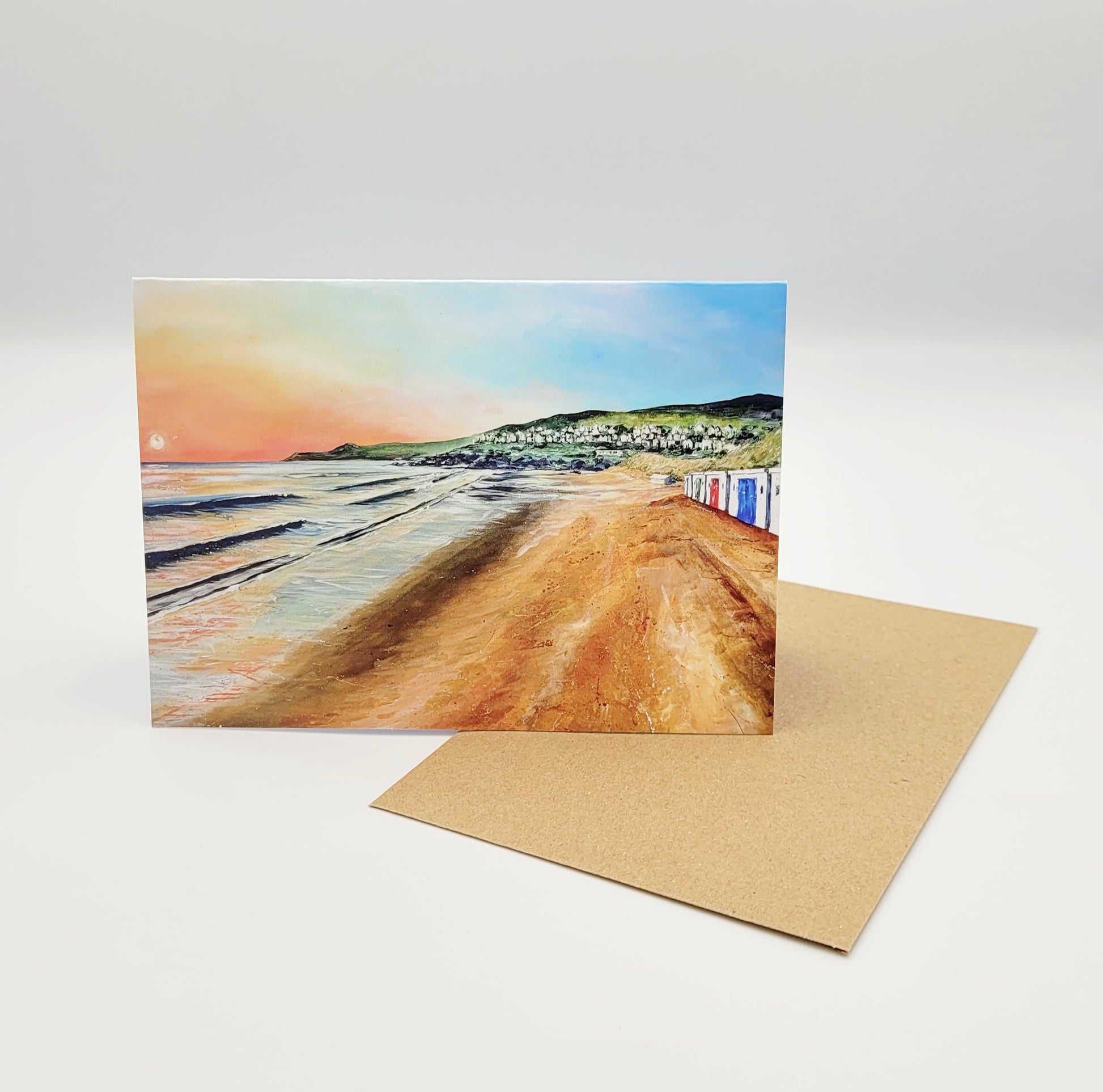 C6 size blank card featuring sunset at Woolacombe, from original artwork by Jo Allum.