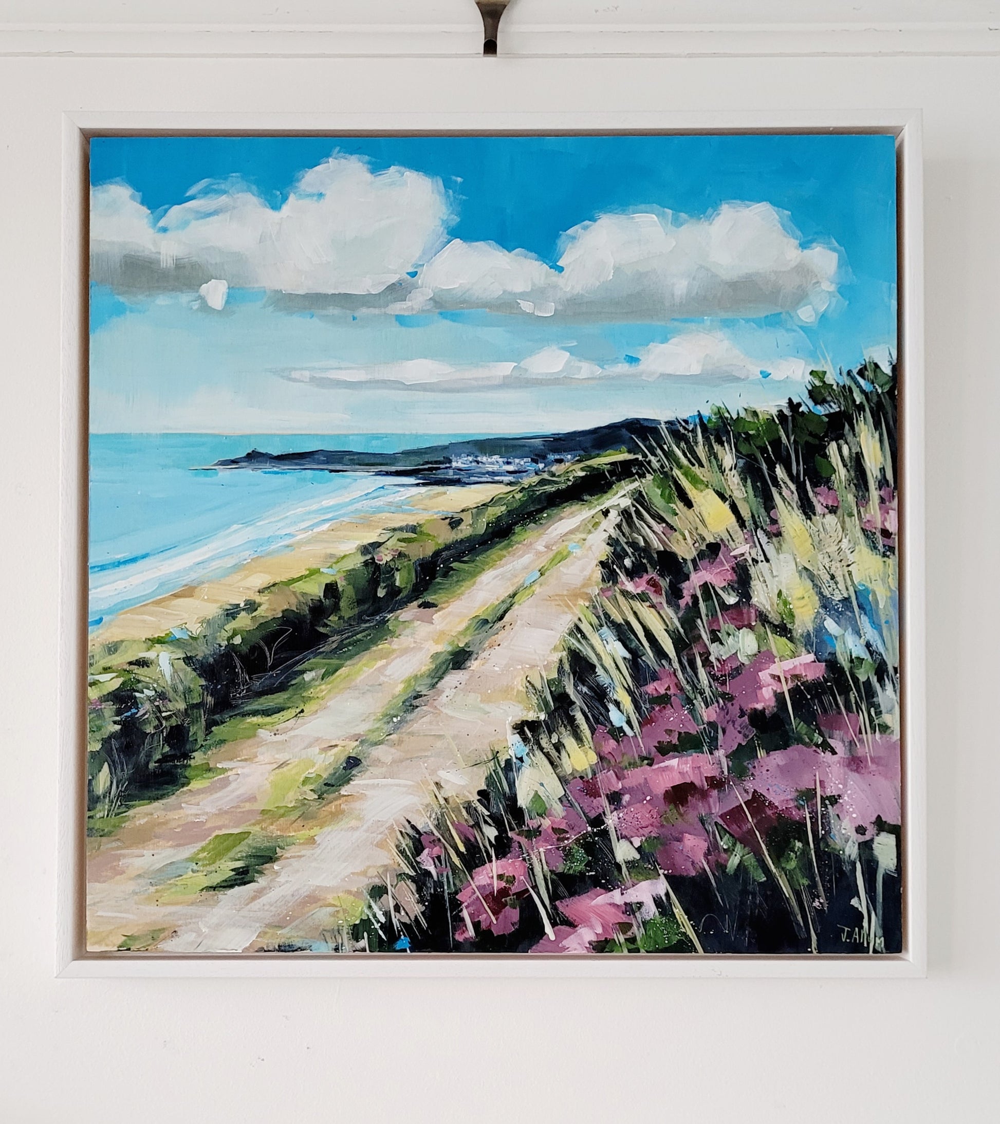 This painting depicts stunning views from the purple heather covered hillsides above Woolacombe and the tranquil coastal scenery will transport you to warm, peaceful days by the sea. A perfect addition to any art collection.