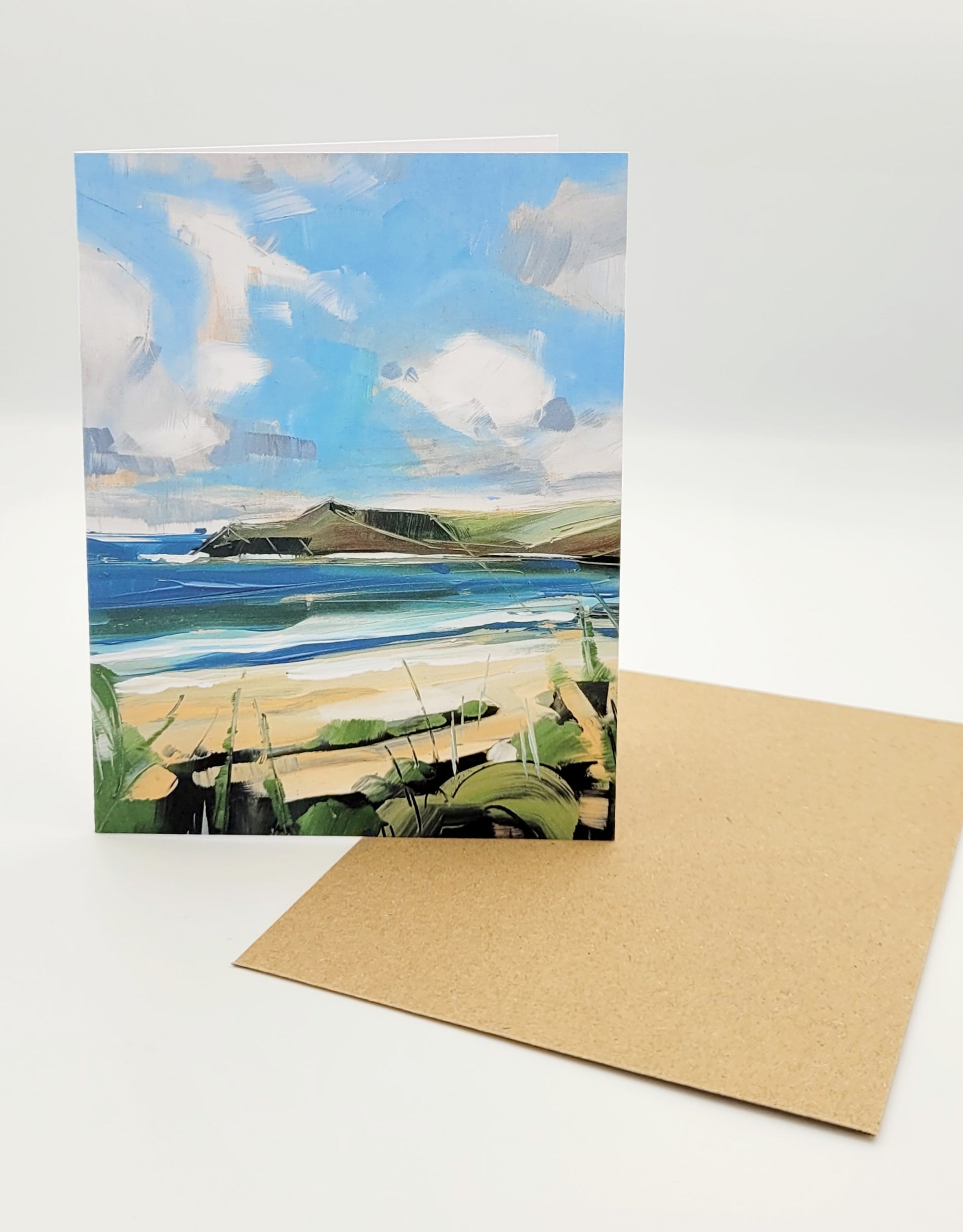 C6 size blank card featuring the view from Marine drive to Morte Point, from original artwork by Jo Allum.