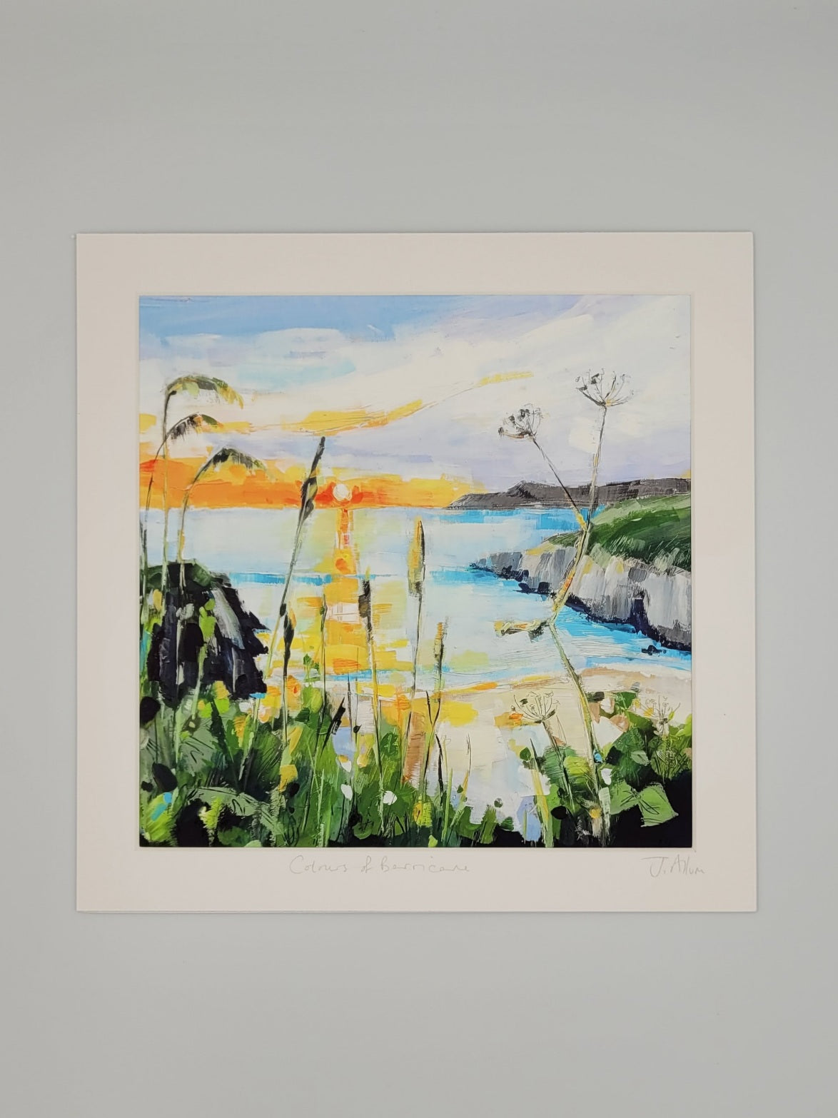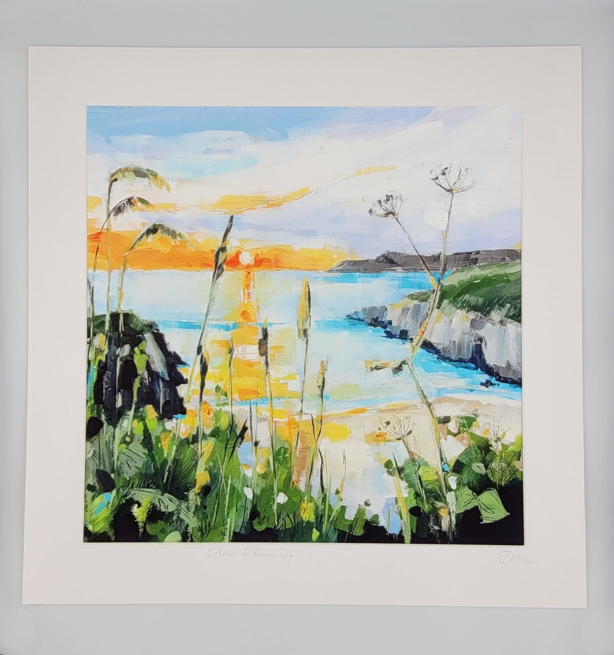 Experience the vibrant colors of the stunning Barricane beach sunset with this high-quality art print by Jo Allum. Adorn your walls with this picturesque scene and be transported to the tranquil shores of Barricane.