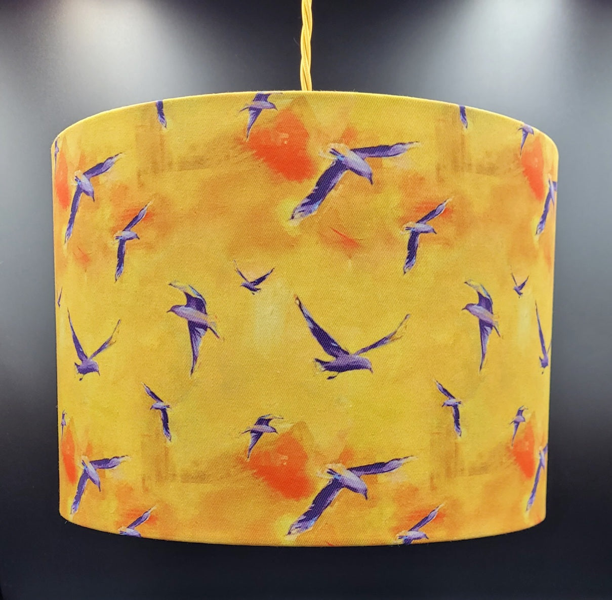 Introducing the Gulls Lampshade, designed by artist Jo Allum. This eye-catching lampshade features a vibrant and colorful seagull design, guaranteed to bring a touch of coastal charm to any room.