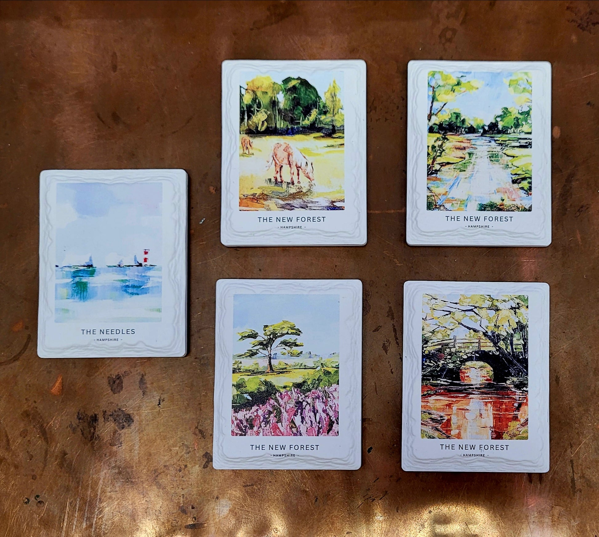 Ceramic Magnets with scenes of the New Forest taken from original artwork by Jo Allum