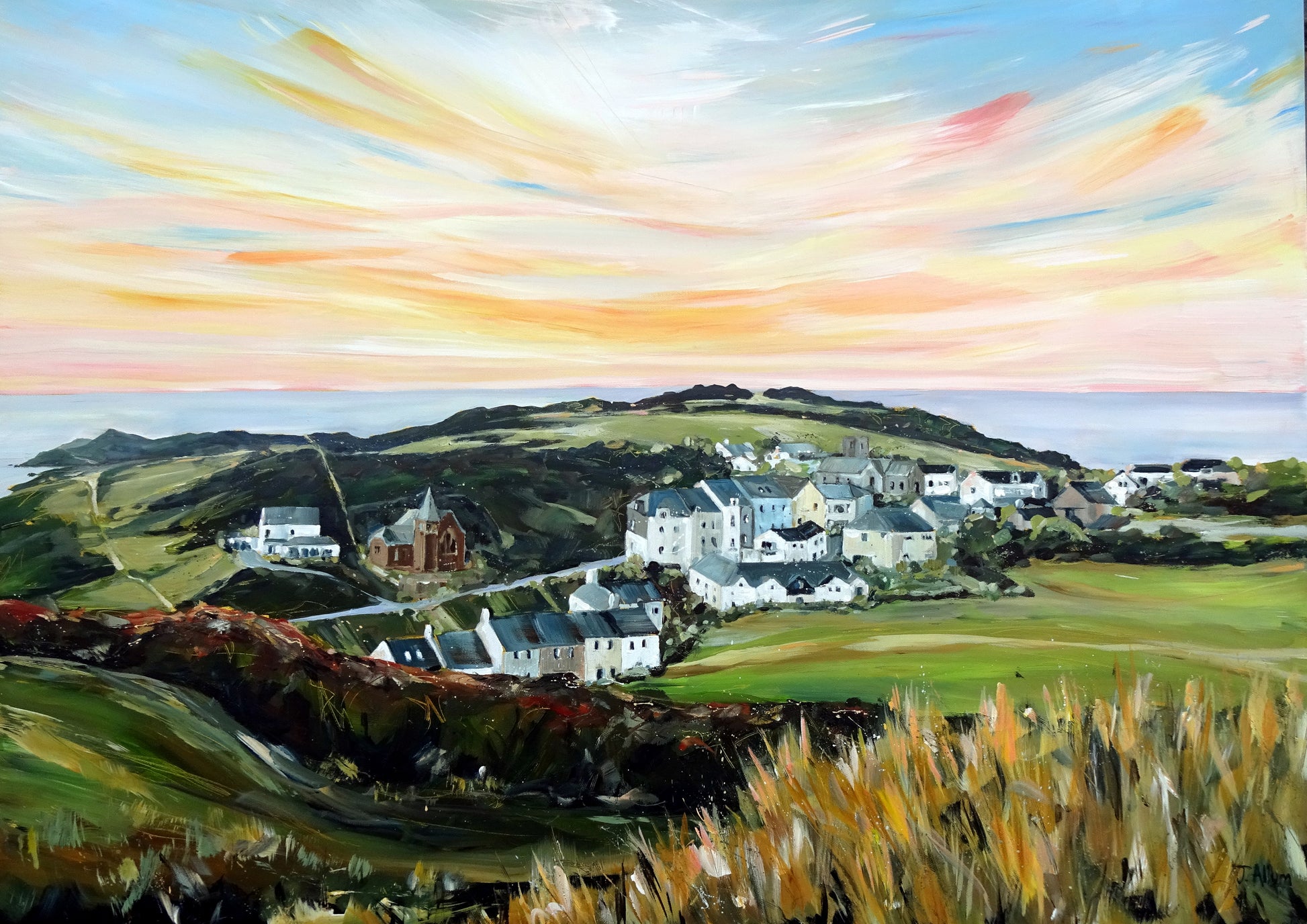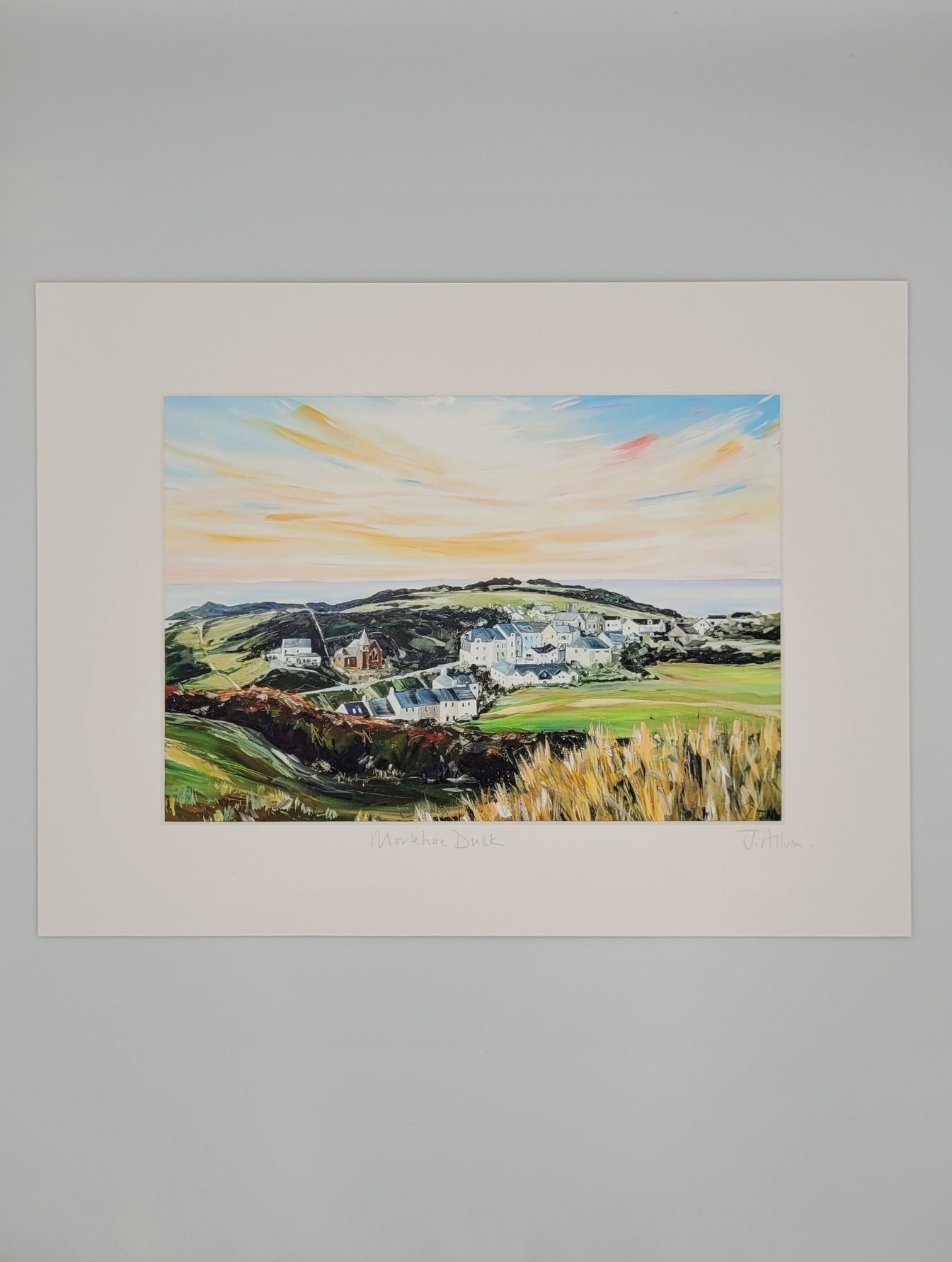 Experience the beauty of Mortehoe, North Devon with our high-quality art print by Jo Allum. Surrounded by National Trust land, this quaint village offers breathtaking views in all directions, especially during sunset. Add a touch of Devonian charm to your home with this stunning piece.