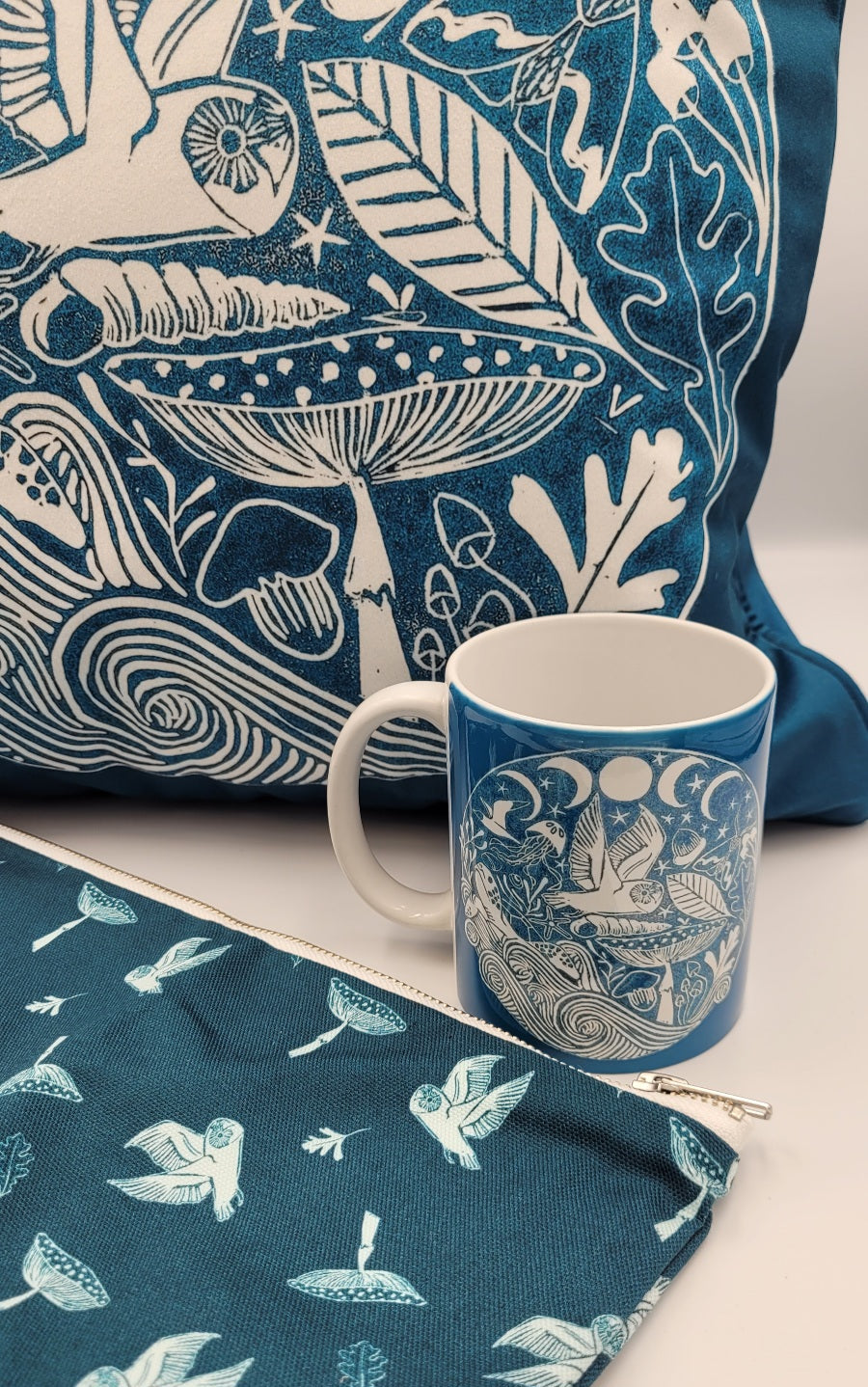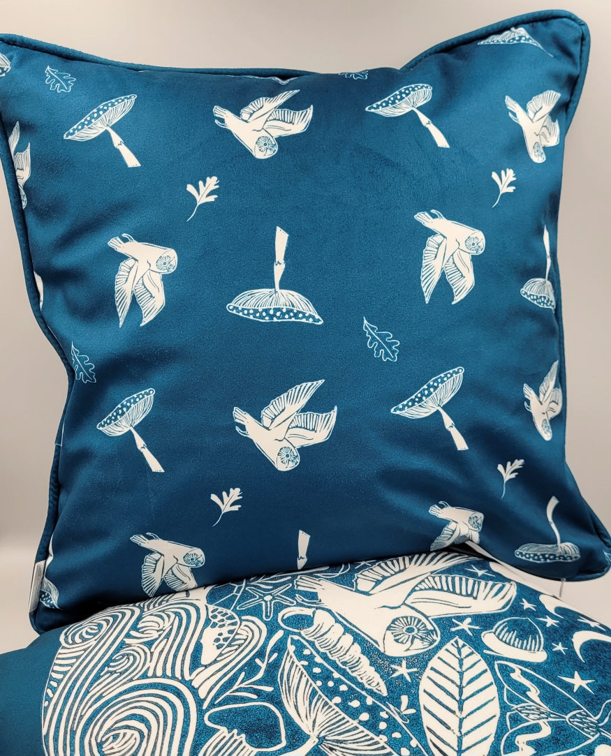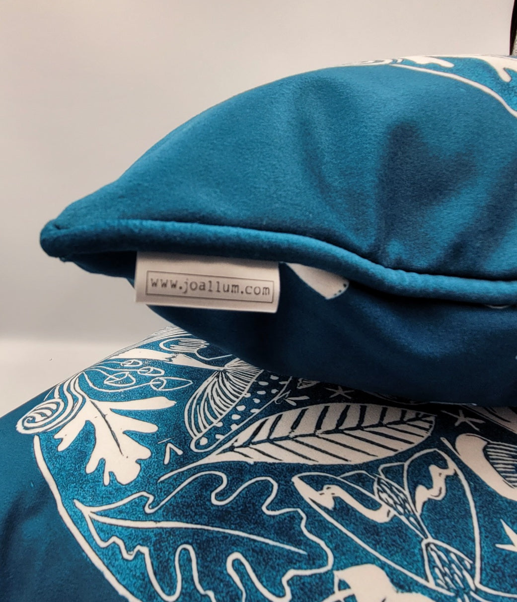 Introducing the Nature is Watching Cushion, featuring a beautifully detailed lino print design by Jo Allum.