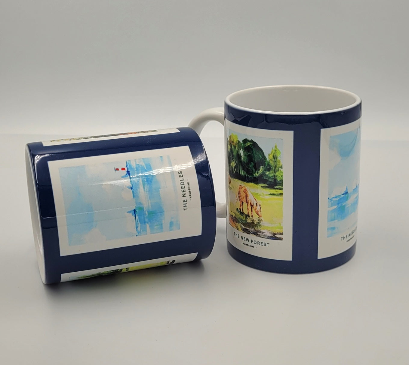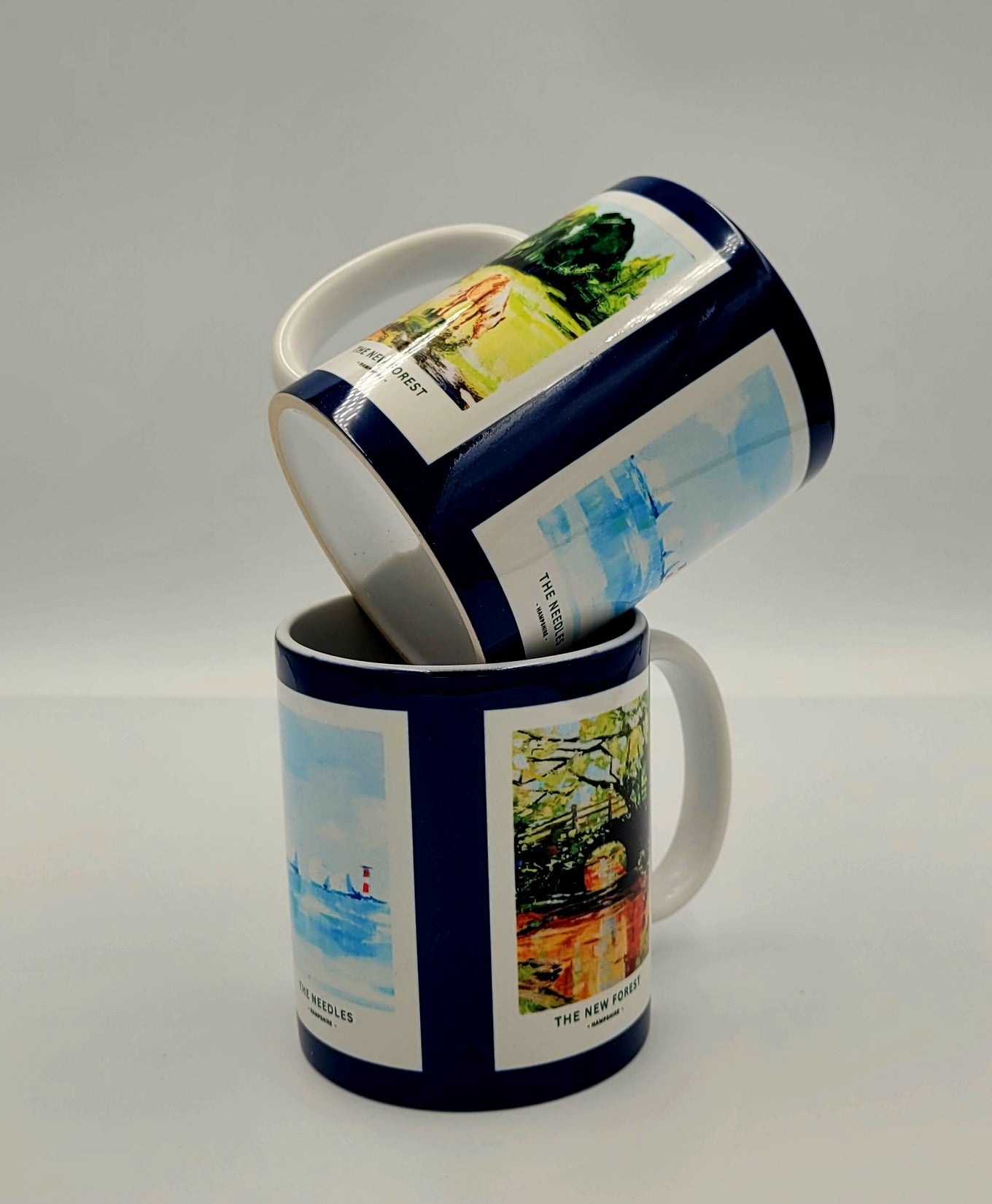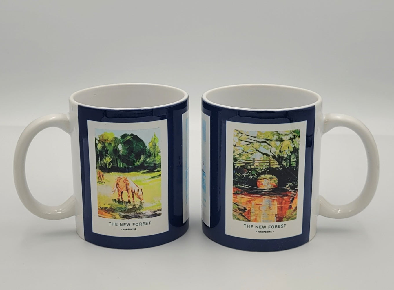 This ceramic mug features stunning poster-style images of New Forest ponies, The Needles and a quiet New Forest stream.