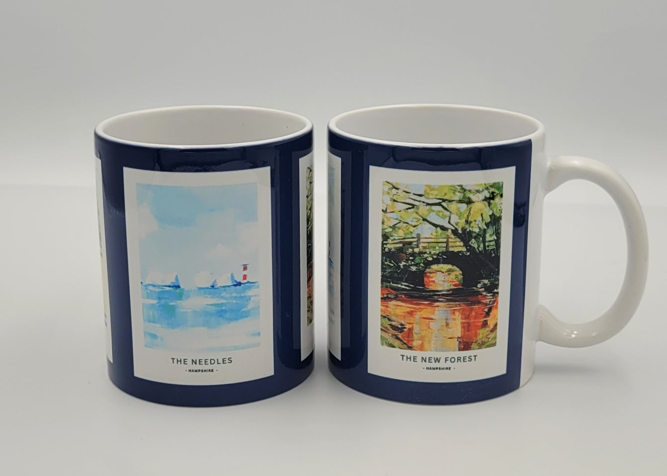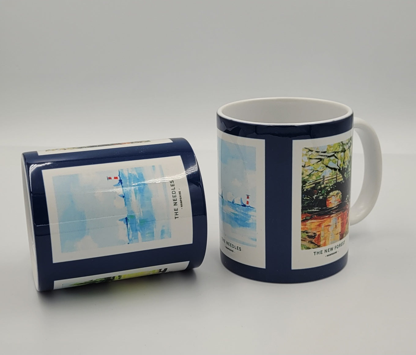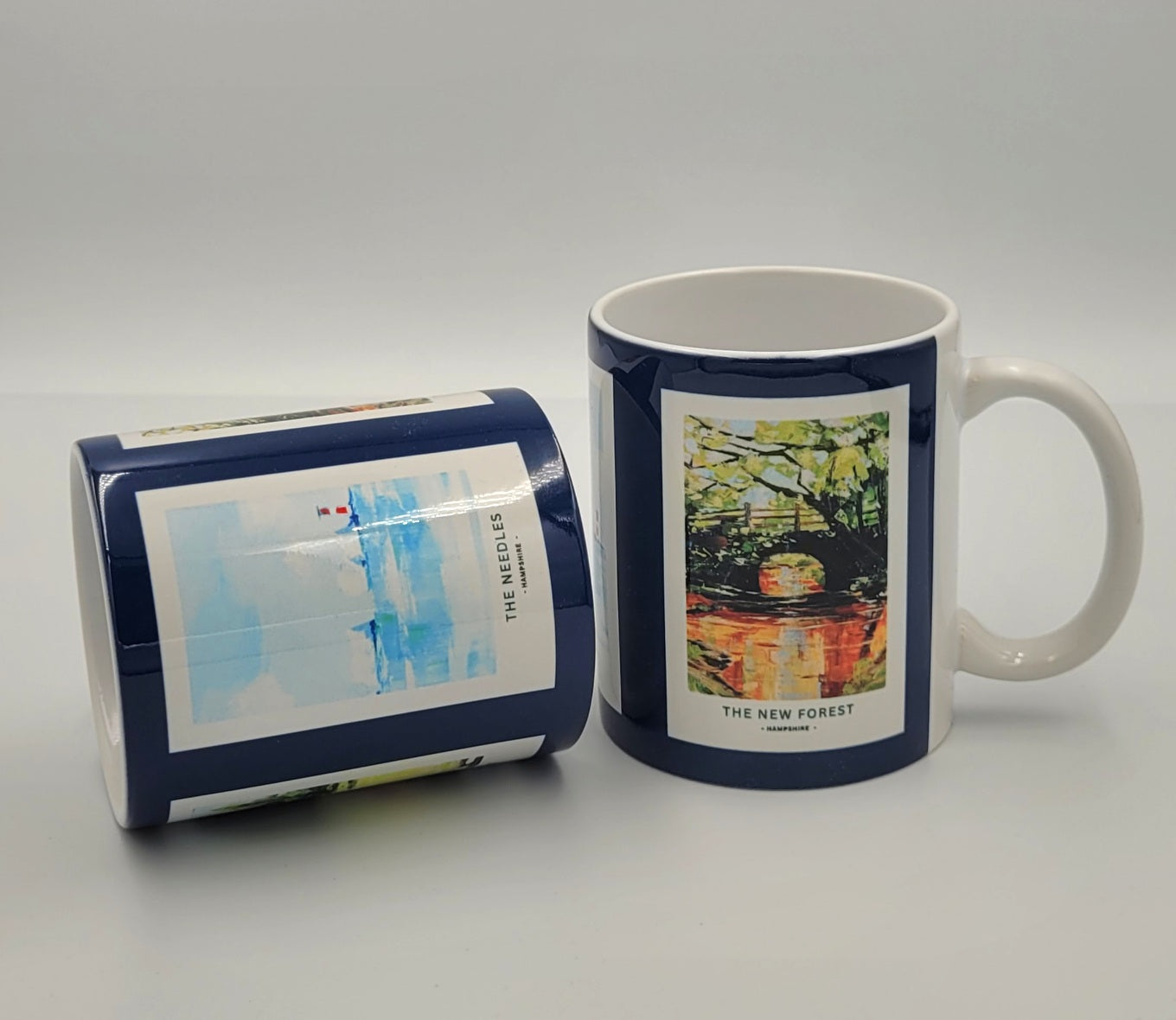 This ceramic mug features stunning poster-style images of New Forest ponies, The Needles and a quiet New Forest stream.