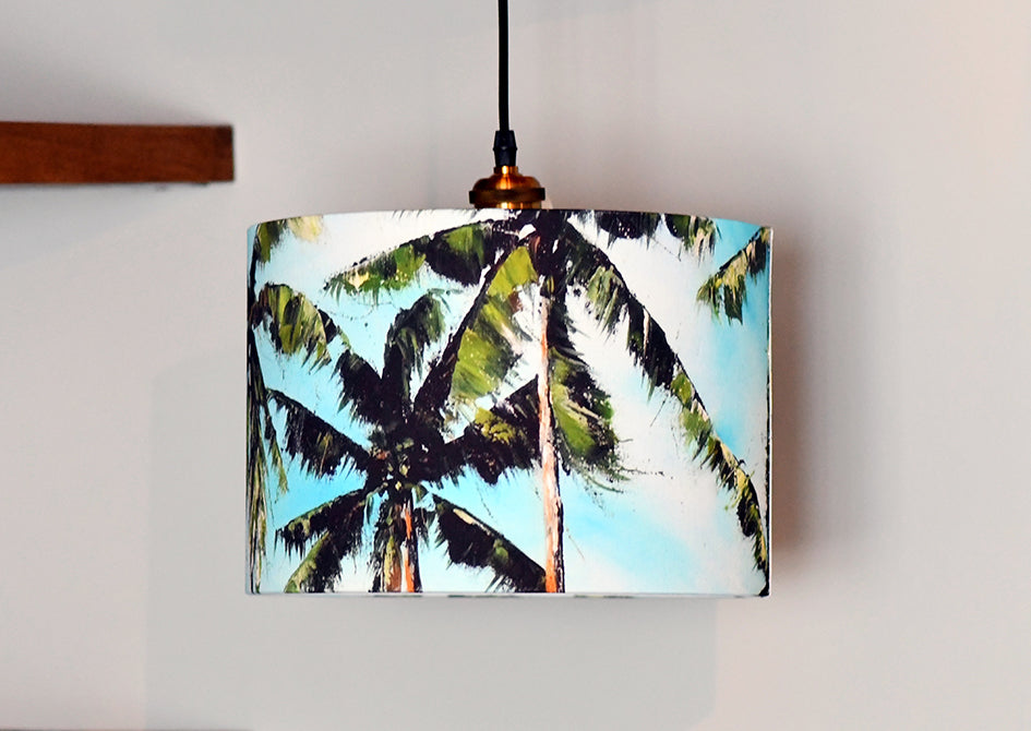 Illuminate your space with the tropical charm of the Palm Lampshade by Jo Allum.