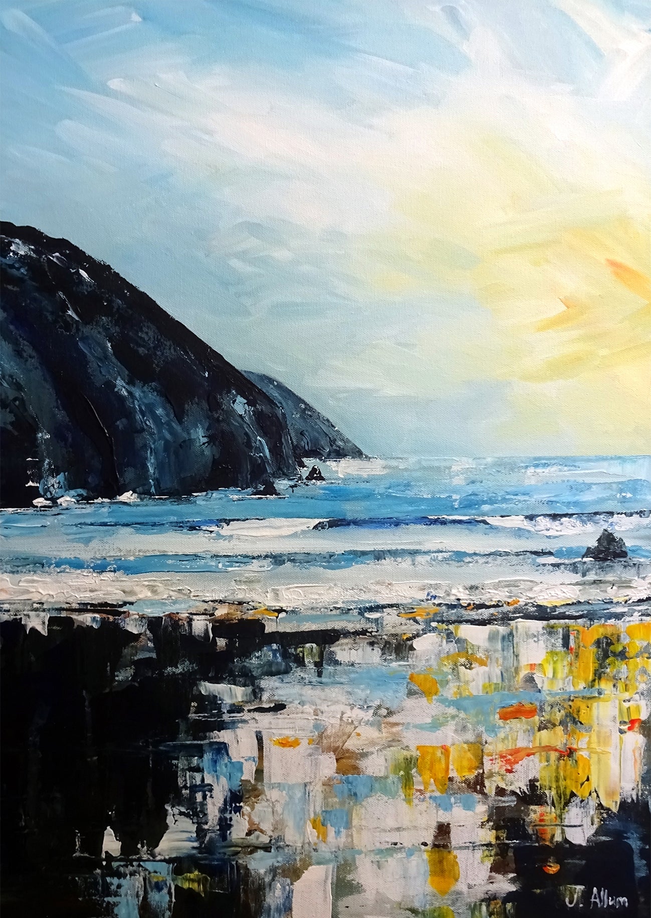Experience the breathtaking beauty of Putsborough in North Devon with this art print by Jo Allum.