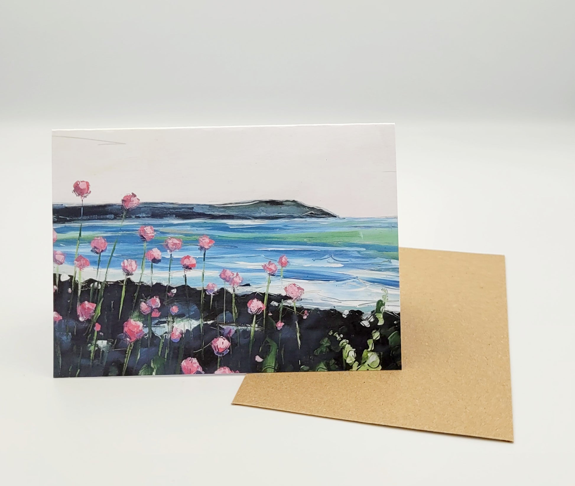 C6 size blank card featuring coastal flowers from original artwork by Jo Allum.