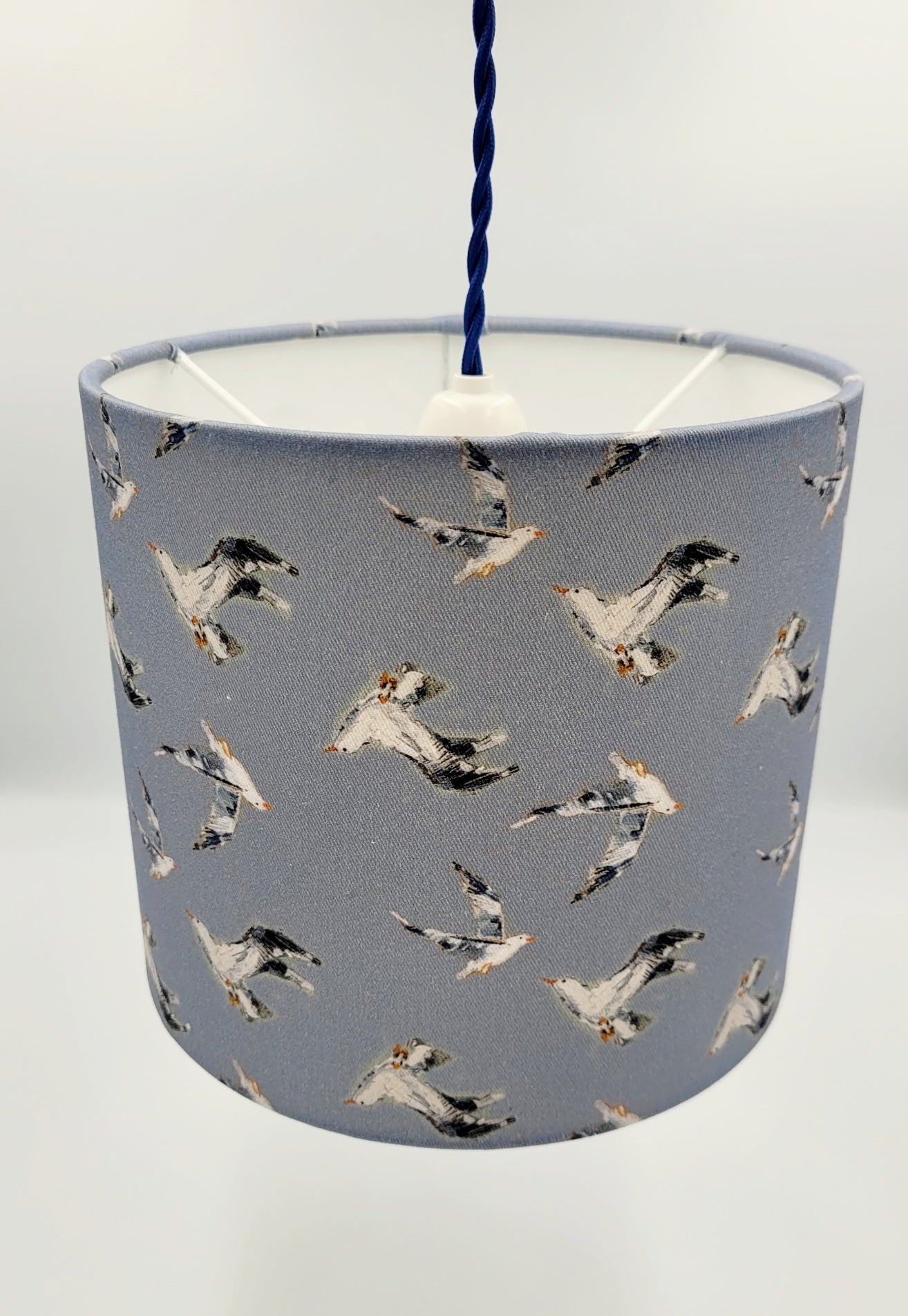 Discover the beauty of coastal design with our seagull print ampshade by Jo Allum.