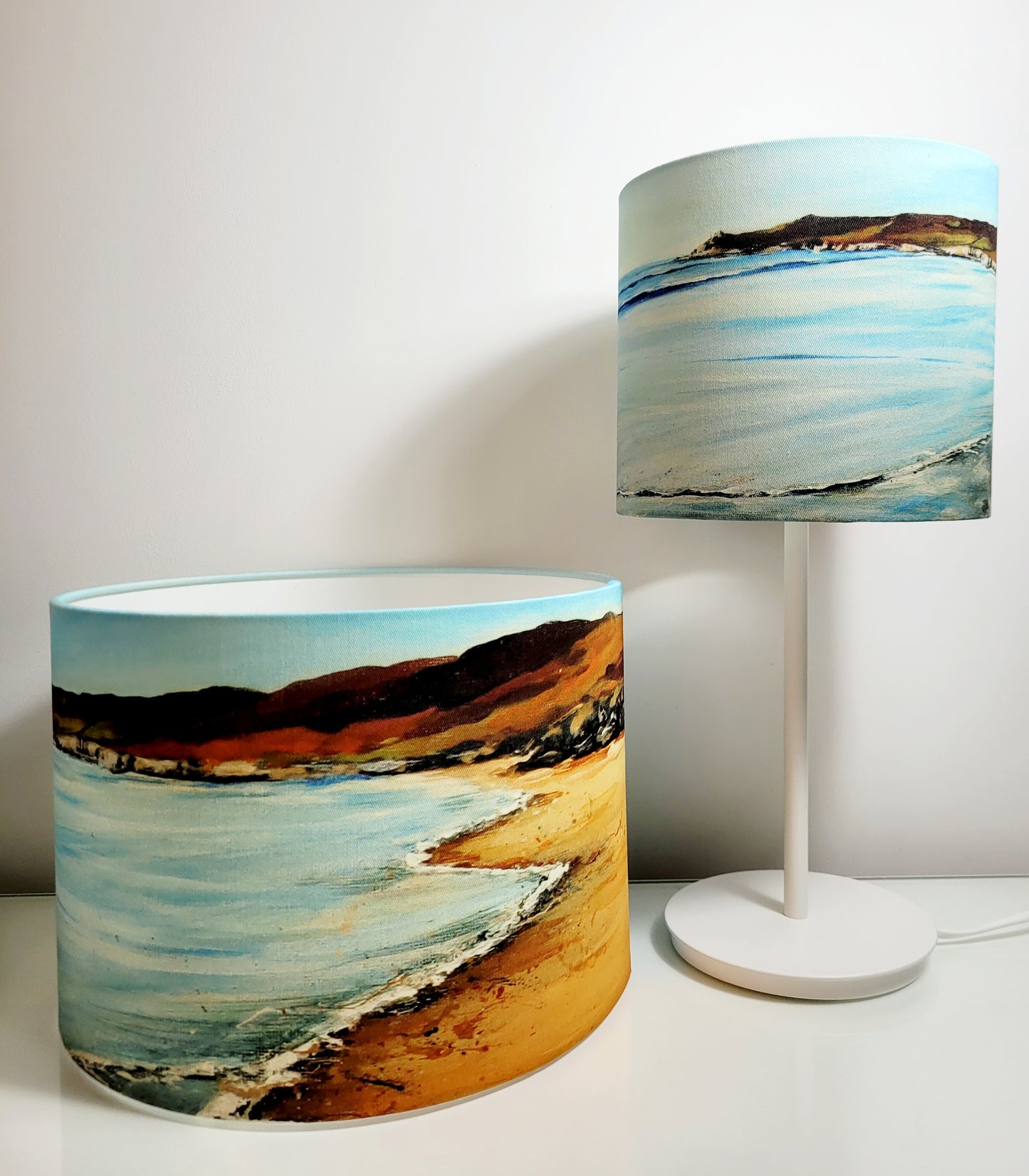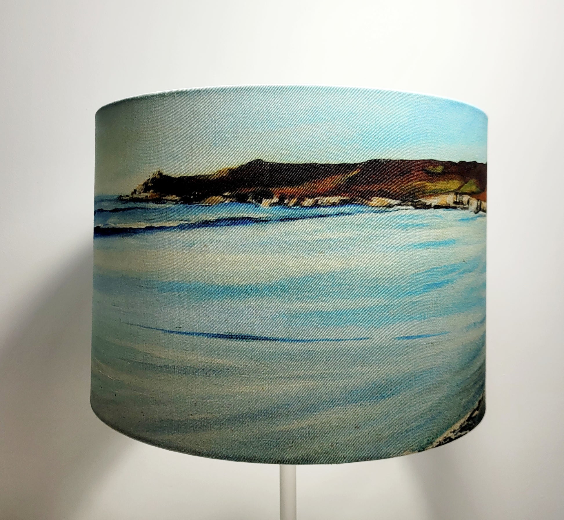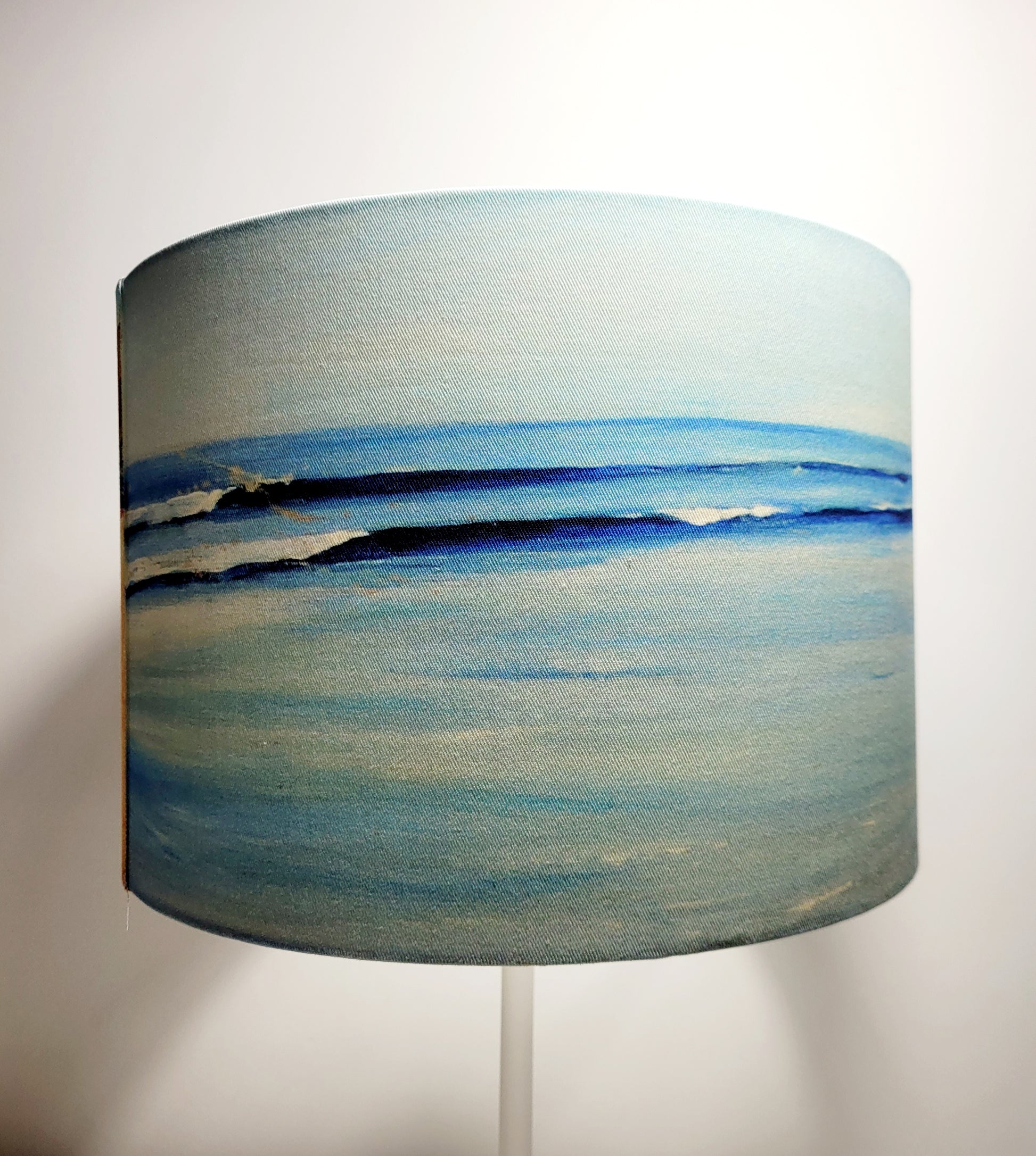 The Shoreline Lampshade features a stunning design by Jo Allum that captures the beauty of the ocean.