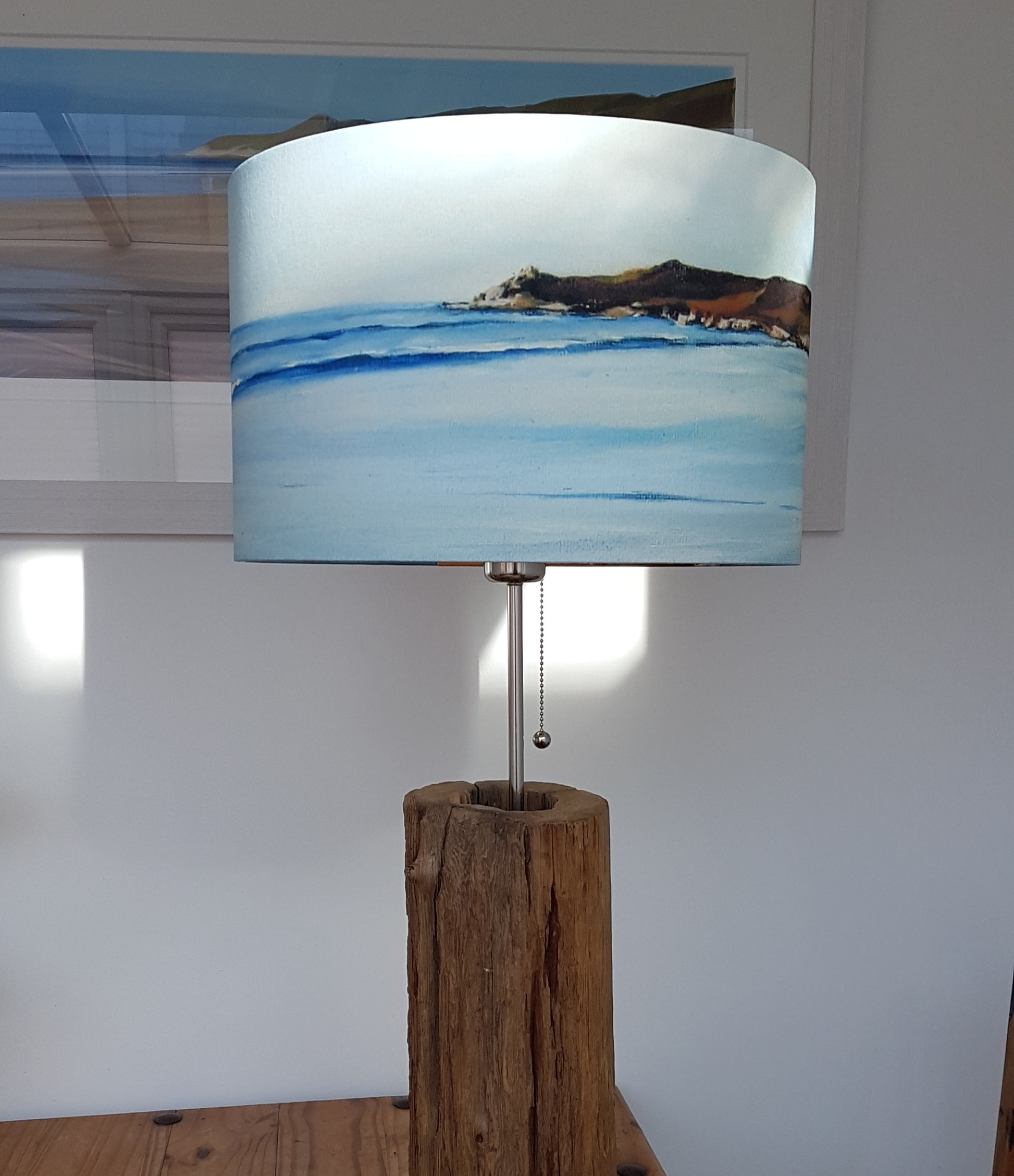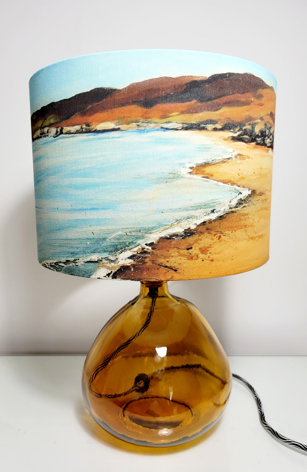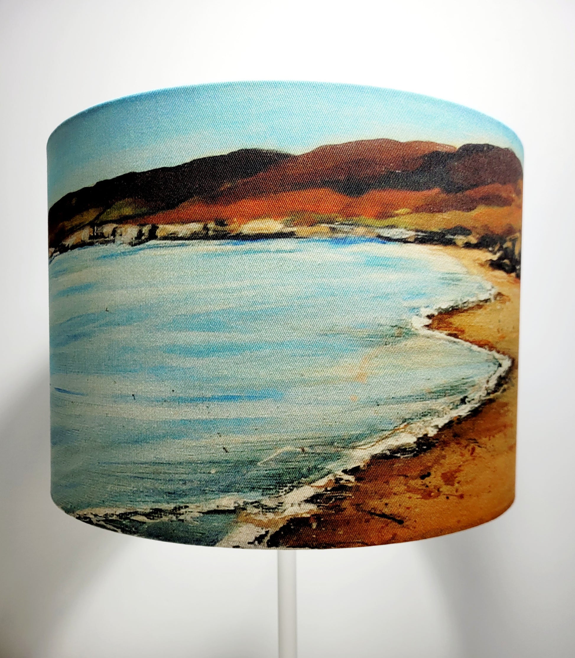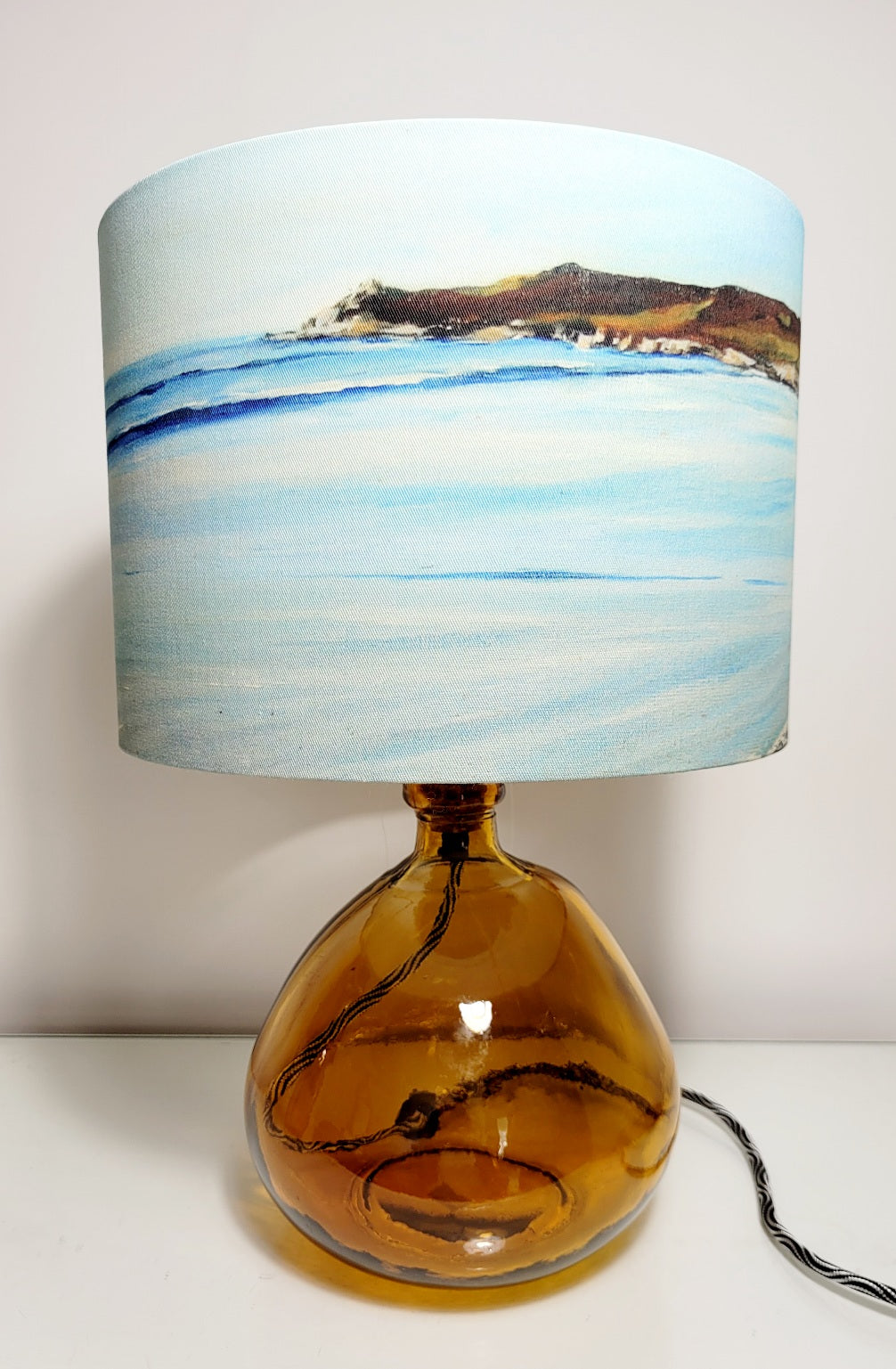 The Shoreline Lampshade features a stunning design by Jo Allum that captures the beauty of the ocean.