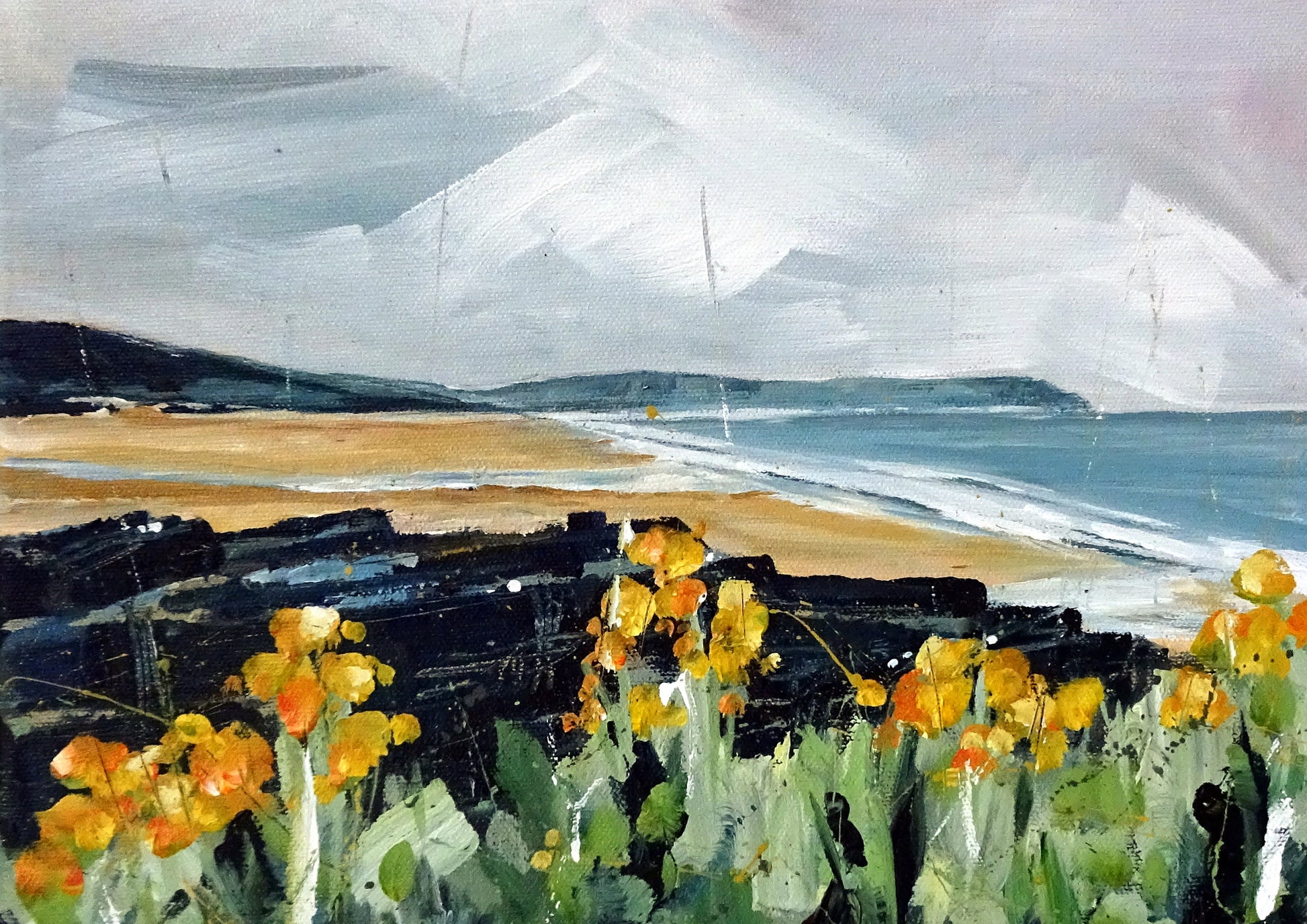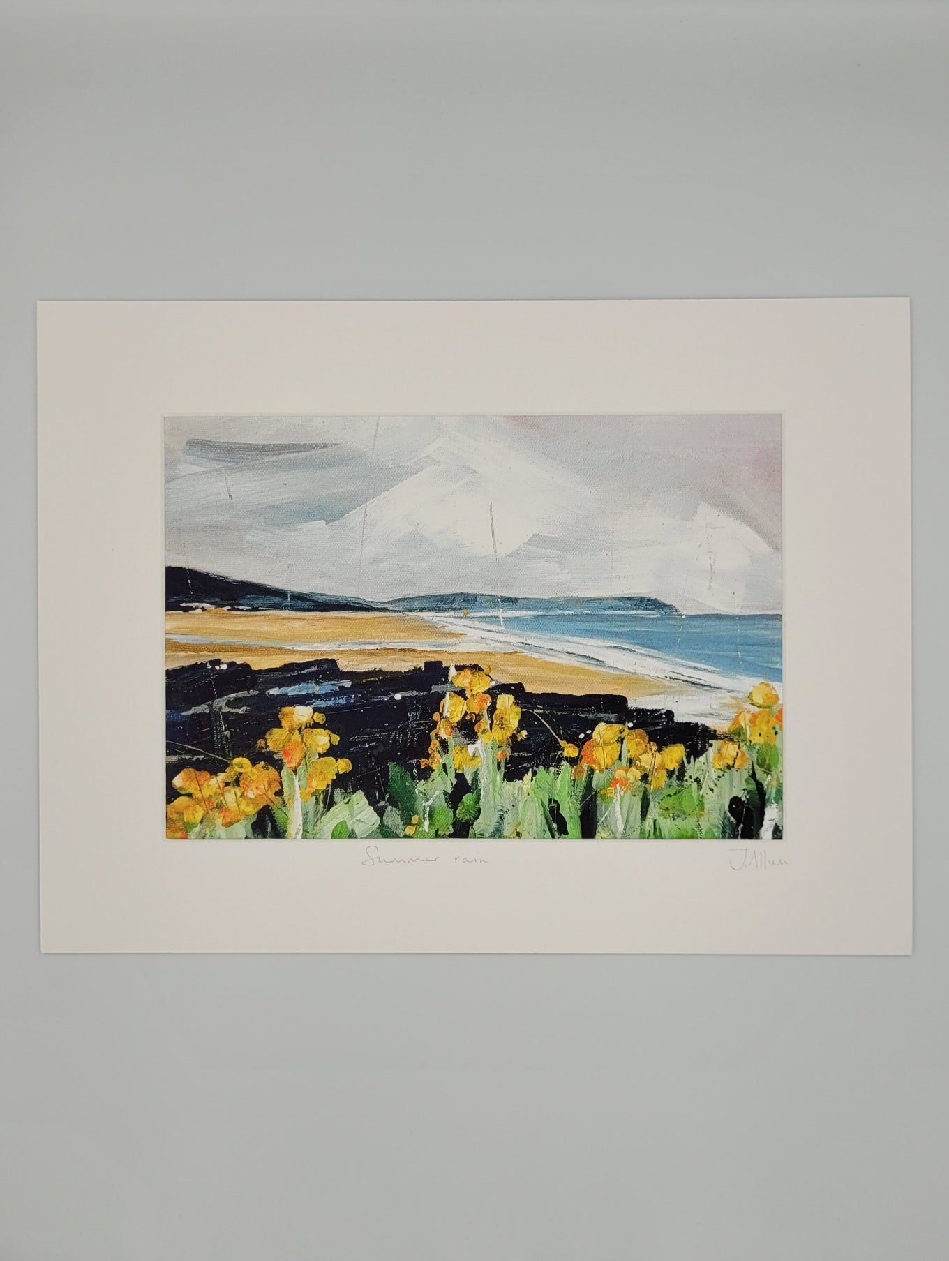 Indulge in the beauty of Woolacombe with the Summer Rain art print by Jo Allum. Featuring a quality art print from the original painting, this print captures the stunning views, even on a rainy day. Embrace the beauty and add a touch of elegance to any space.