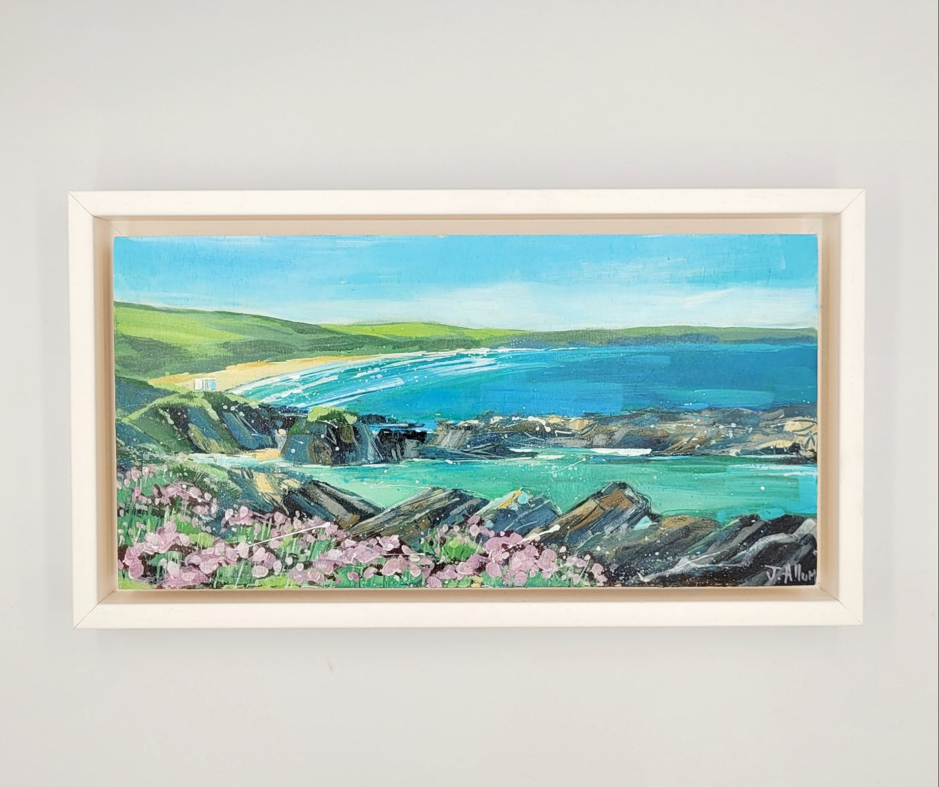 Sea Pinks and Turquoise Seas III. Original painting by Jo Allum