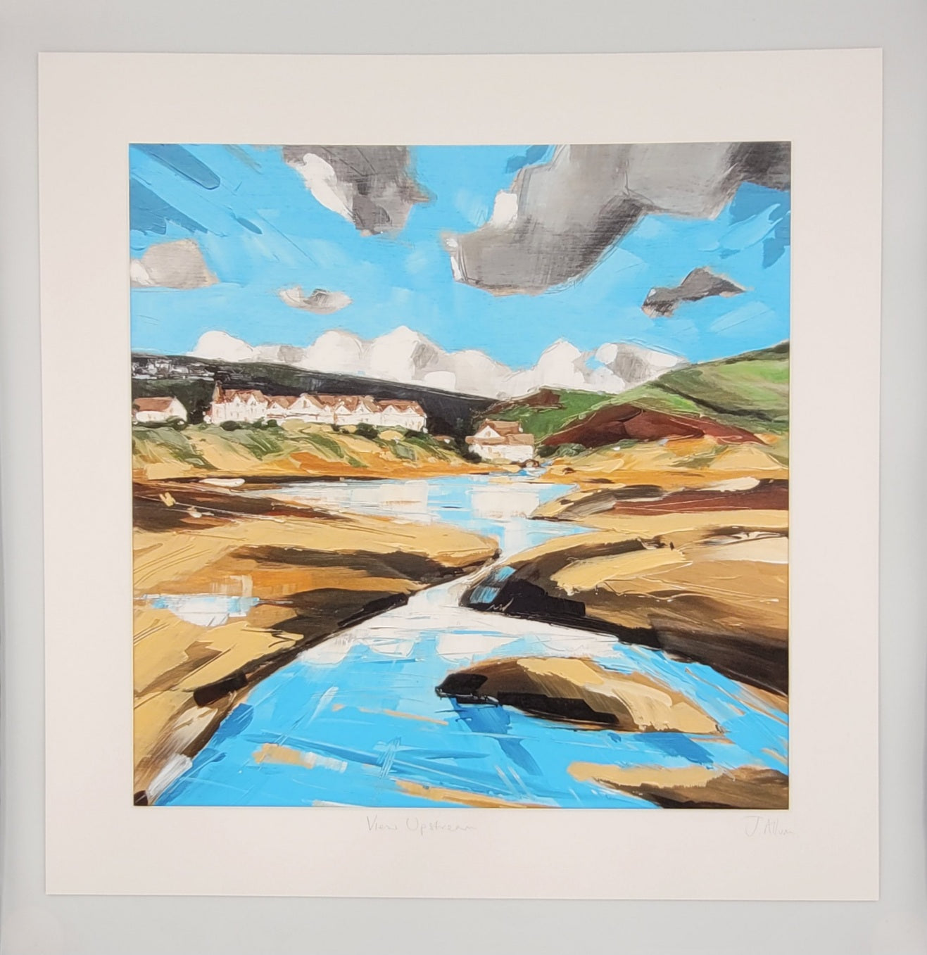 Experience the breathtaking beauty of Woolacombe Bay from the comfort of your own home with View Upstream. This stunning art print by Jo Allum captures the idyllic view from the beach to the Woolacombe Bay Hotel, making it the perfect addition to any art collection.