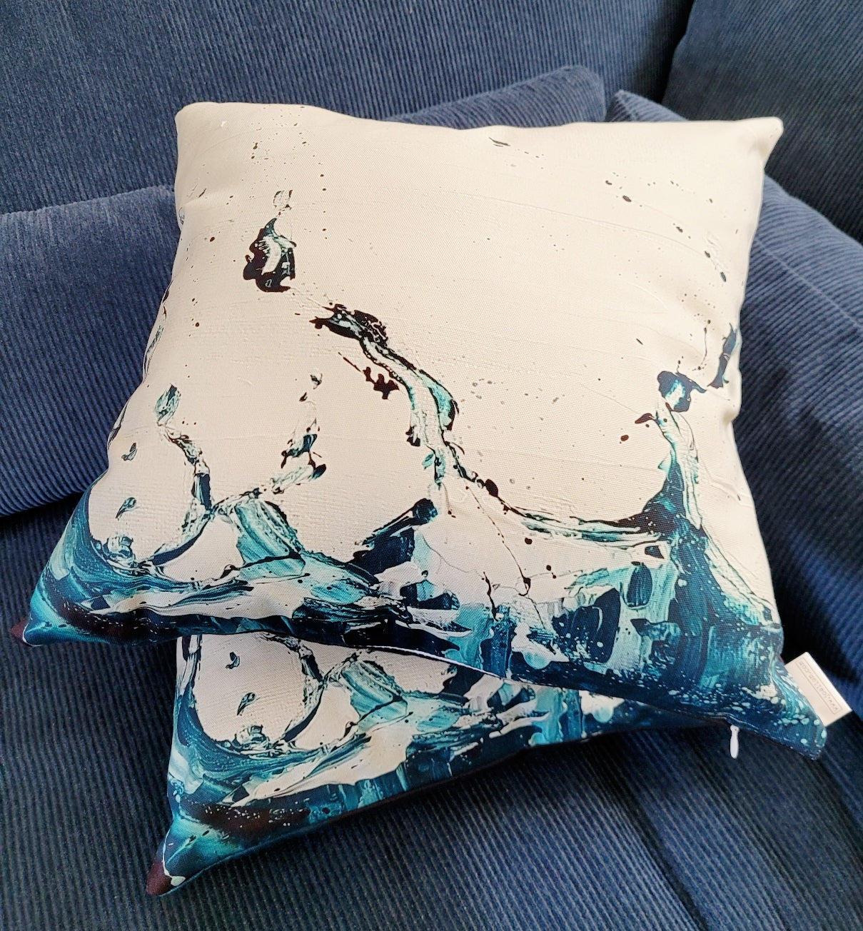 Experience comfort and style with our Water Cushion. Made with 100% cotton and featuring a unique abstract water design by Jo Allum, this double sided cushion is perfect for adding a touch of elegance to any room. Stay cozy and add a modern touch to your decor with this beautifully crafted cushion.