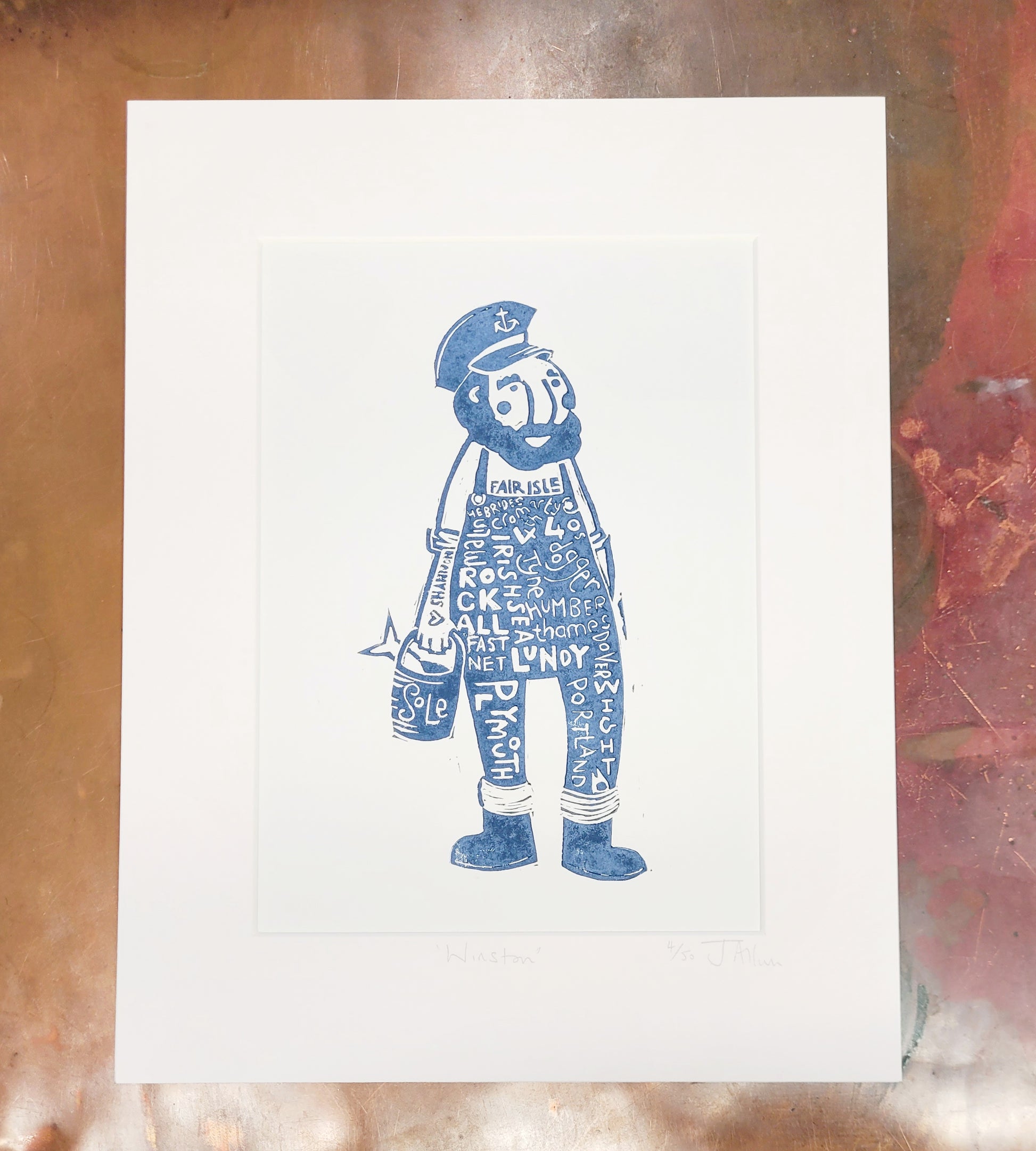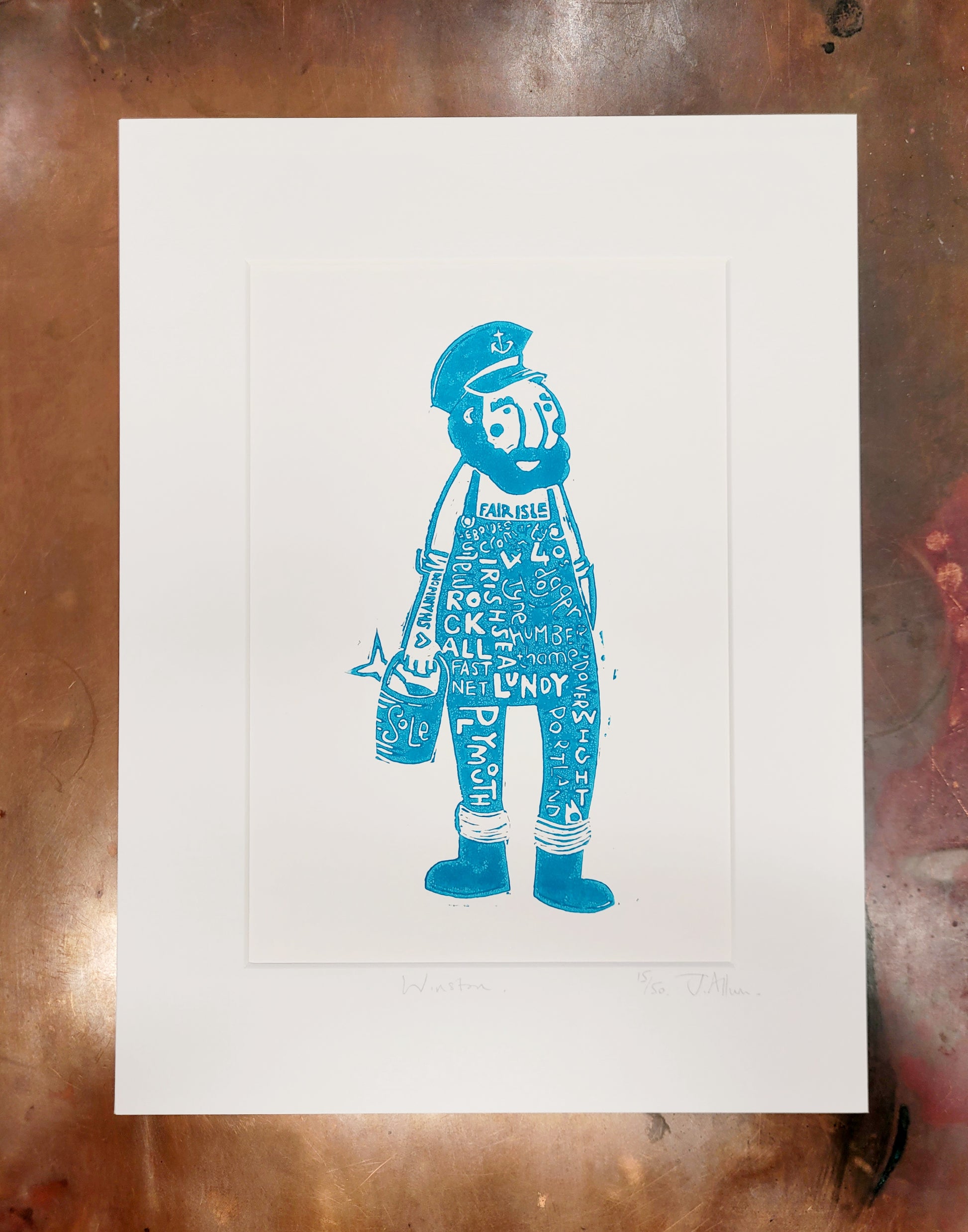 Expertly crafted by artist Jo Allum, Winston is an original lino print that captures the essence of the sea regions from the shipping forecast.