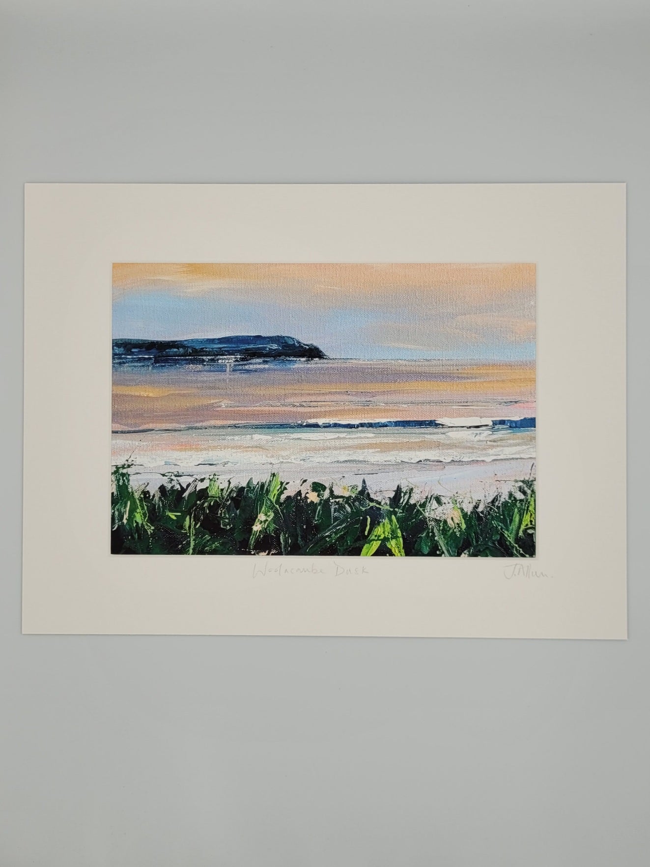 This art print by Devon artist Jo Allum, captures the soft and beautiful hues of dusk with delicate pinks and purples. The perfect addition to any home or office, this print brings subtle warmth and tranquility to any space. A stunning representation of nature's most peaceful moments.